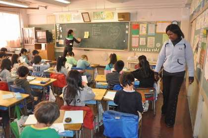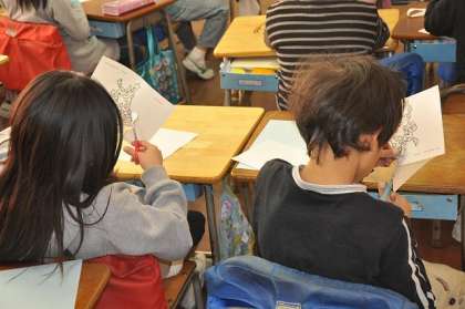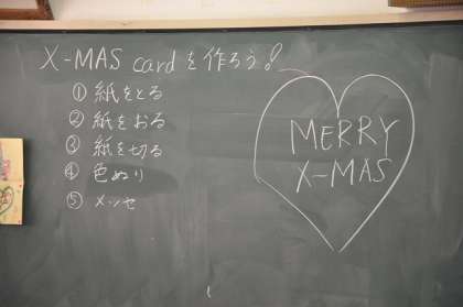 英語活動の時間にカード作りをしています。
