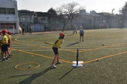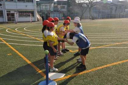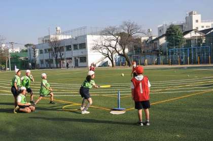練習が終わり、ゲームです。対戦チームとのあいさつのあとで、ゲームを始めました。打ったボールが遠くへ飛ぶようになってきました。