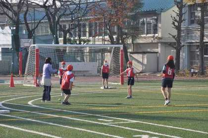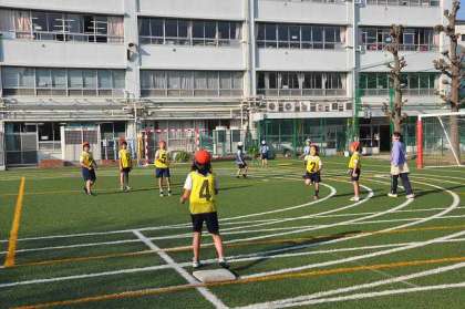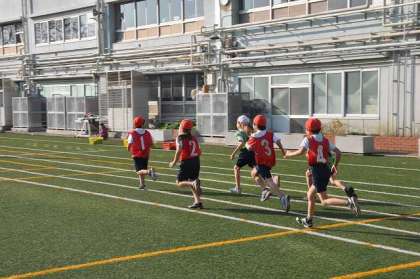 準備運動としてチームごとに校庭を走り、守備を中心に練習をしました。捕ったり投げたりすることが上手になってきました。