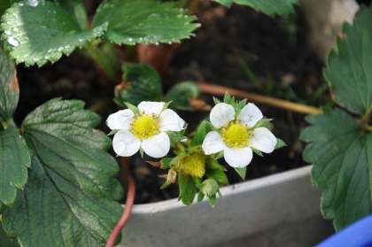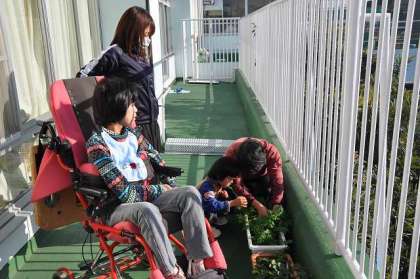 個別学習に取り組んでいます。ベランダで、イチゴやにんじんを観察しました。イチゴの花もきれいに咲きました。