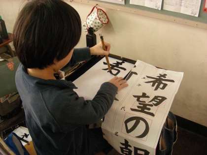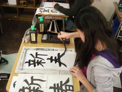 書き初めの練習をしています。
