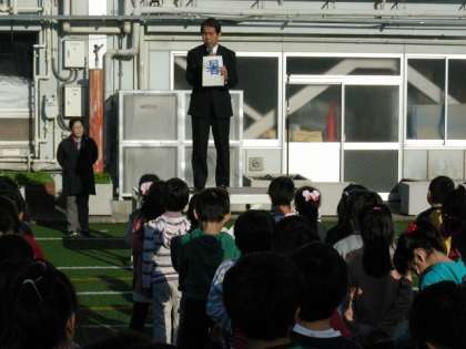 校長先生から今年1年のお話がありました。また、生活指導の先生から、冬休みの過ごし方についてお話がありました。