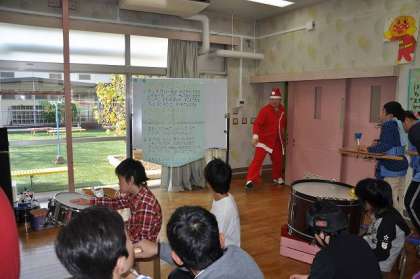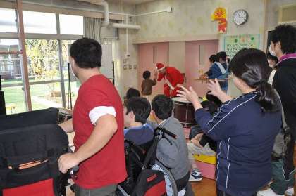 サンタがやってくるの歌に合わせて、サンタが見え隠れしている所を探しました。