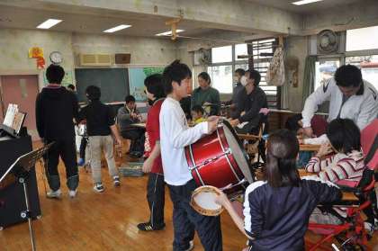 みんなで打楽器を使って合奏しています。合奏している間に、ダンサーも現れました。