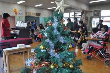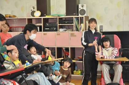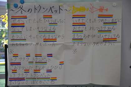 今日のわかたけタイムは、1〜3組が合同で音楽の学習です。最初は、ハンドベルを使って合奏しました。