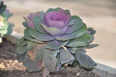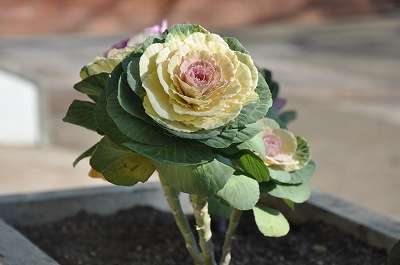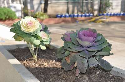 年末のなるとよく見られる葉ボタンが、学校の玄関前にも植えられています。