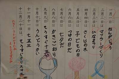 子どもたちが一人一人考えて作った日づけ歌です。