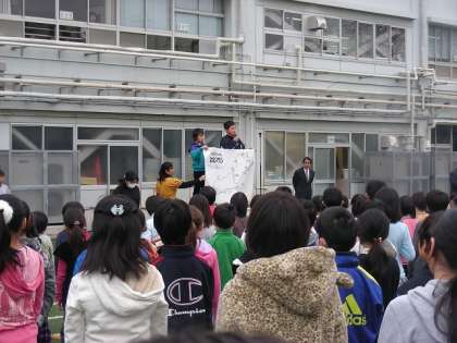 2月から体育委員会の主催で始める「みんなでちょうせん なかよしマラソン」の説明がありました。寒い日が続いていますが、がんばって体を動かしましょう。