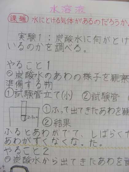 まず初めに、炭酸水に何が溶けているのかを調べました。