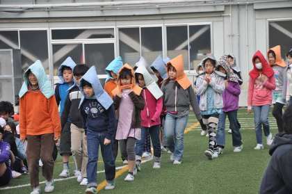 今月の避難訓練は「中休みに地震発生」という想定で実施しました。前もって避難訓練をするという予告をしないで実施しました。自分の命を自分で守るために「おかしも」の約束を守って避難できるように訓練を積み重ねています。訓練後は、各学級で反省をします。
