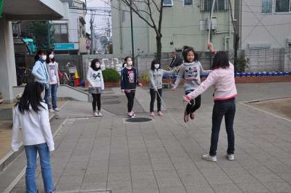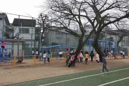 空が雲に覆われ、寒い休み時間になりましたが、避難訓練終了後に子どもたちは元気よく遊んでいました。