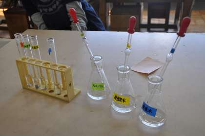 塩酸や炭酸水などを使って、アルミニウム、鉄、銅、亜鉛を溶かしてみました。