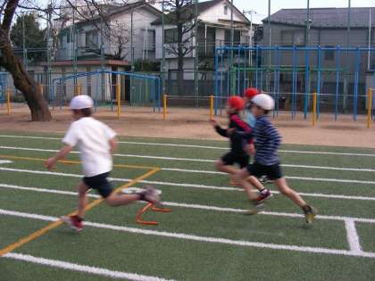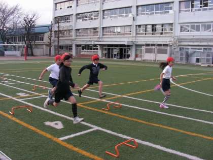 しっかりとスピードにのってミニハードルをまたいでいました。