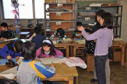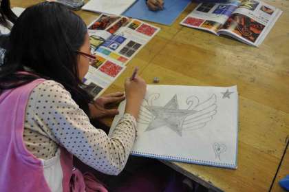 彫刻刀を使って版画を作っていきます。まず、彫刻刀の使い方についての注意点を確認したあと、下書きをしました。その下書きを木に写していきます。