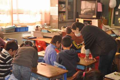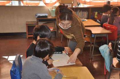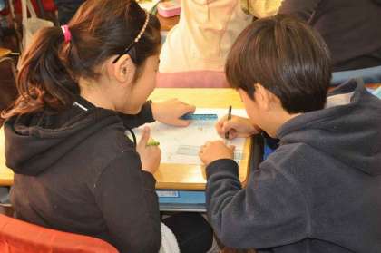 点と点を直線で結んでいき、三角形や四角形を作っています。