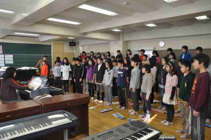 2クラス一緒で、卒業に向けての歌の練習をしています。さすがは6年生という歌声です。