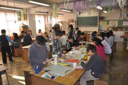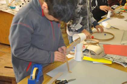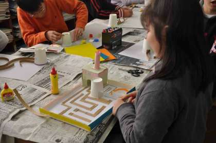 自分の思いや発想をビー玉迷路に表現しています。