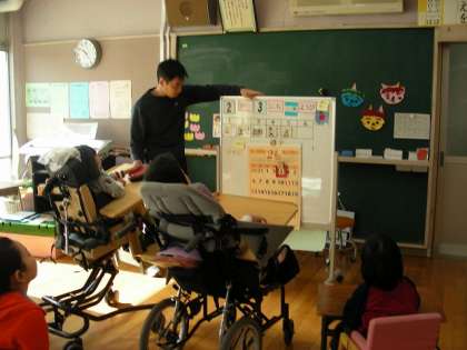 朝の会をしています。名前を呼ばれたら、元気よくあいさつをしました。