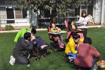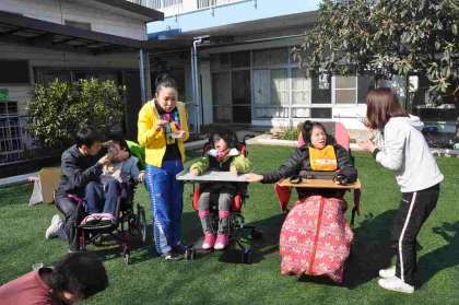暖かい日差しの下、中庭でシャボン玉を飛ばしました。