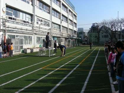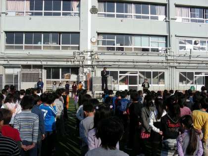 気持ちいい日差しの中で朝会が行われました。