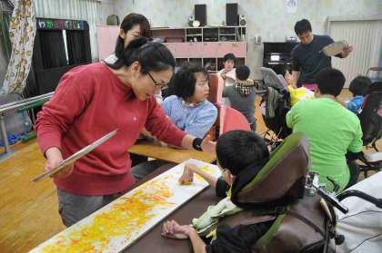 みんなで分担をして作品の台紙作りをしています。どんな作品ができるでしょうか。楽しみです。