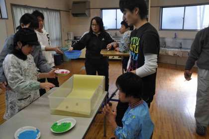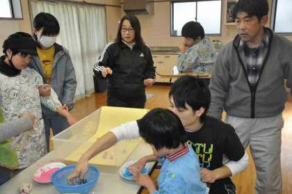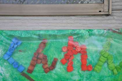 部屋の表示を作るために、台紙にビー玉を使って模様を付けています。そんな作品に仕上がるか楽しみです。
