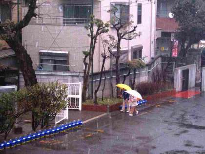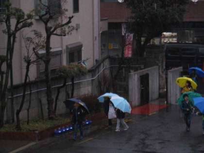 雪の降る中を子どもたちは元気いっぱいで登校しました。