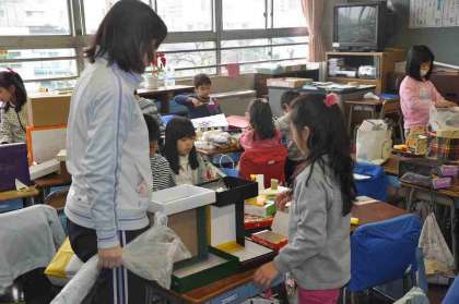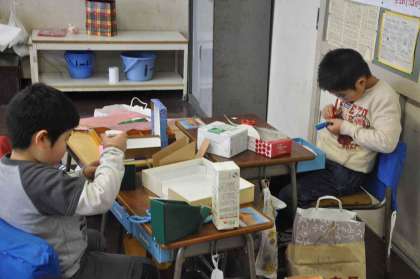 箱を使って「ゆめのまち3ちょうめ」を作ります。