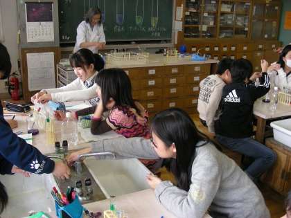 班で協力して実験しています。