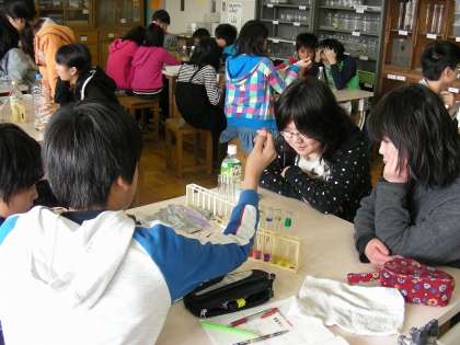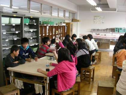 班で役割を決めて実験しました。