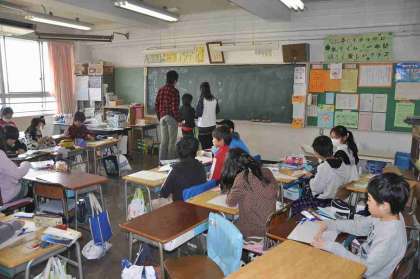 算数の少人数指導で、このクラスは円柱の展開図を書き、作っています。