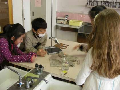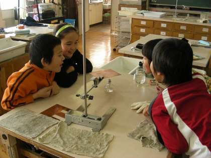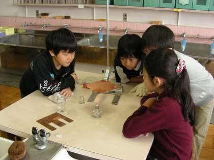 今日は金属を熱して、あたたまりかたを調べました。