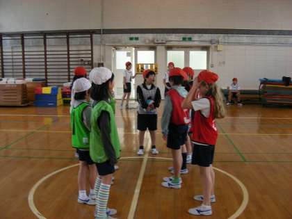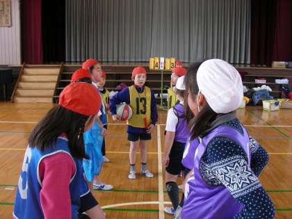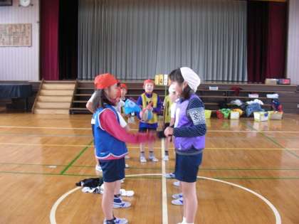 ポートボールのゲームに入る前に、しっかりとあいさつをしています。