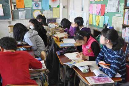 算数の復習の問題に取り組んでいます。