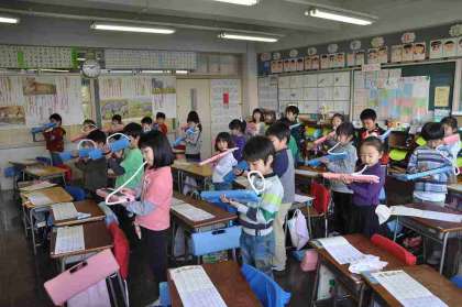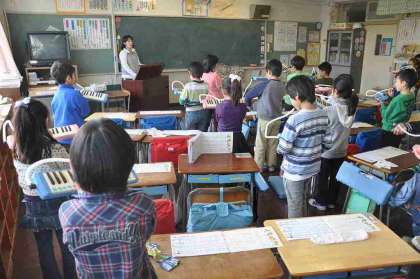 鍵盤ハーモニカを手に持ち、構えて演奏する練習をしました。音がとても美しく、聞いていて優しい気持ちになりました。