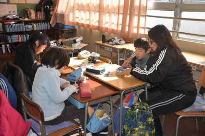 今日のなの花タイムは、決められた班の教室に行き、お世話になった6年生へのメッセージカードを書くために、6年生にいろいろ質問をしました。