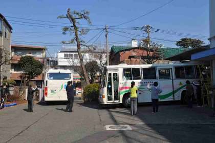 本校の集団下校の直後、わかたけの子どもたちもバスで下校しました。