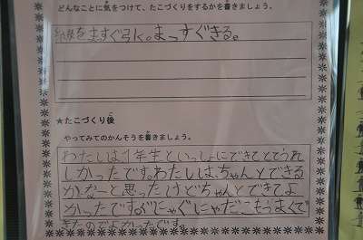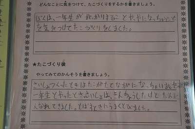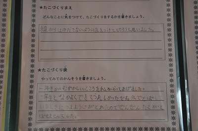 2年生が1年生といっしょに作った凧についての感想が掲示してあります。