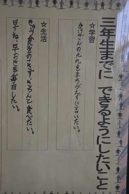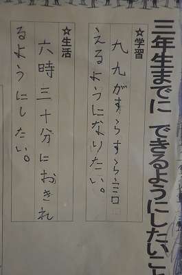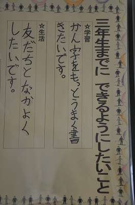 2年生が3年生になるまでにできるようにする目標を立てました。