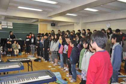1年生から5年生が縦割り班活動をしている時間に、わかたけ学級と本校の6年生は音楽室で卒業式に歌う歌の練習をしました。とても上手でした。練習を積み重ねて、さらに素晴らしくなっていく合唱がとても楽しみです。