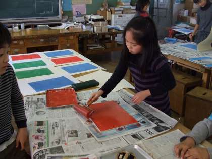 今日はローラーで色を付けて刷りました。
