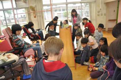 ボーリングを、みんなでいっしょにやりました。わかたけの子どもたちがボールを転が