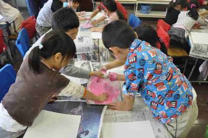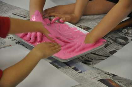 色を混ぜ合わせています。