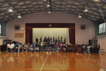 体育館に集まり、合奏の練習をしています。さすがは6年生、素晴らしい演奏です。(音をお届けできないのが残念です。)