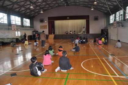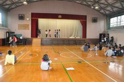 体育館でわかたけ2組と一緒に感謝の会の練習をしました。