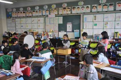 練習の成果を生かし、みんなの気持ちを一つにして合奏しています。とても素敵な演奏です。