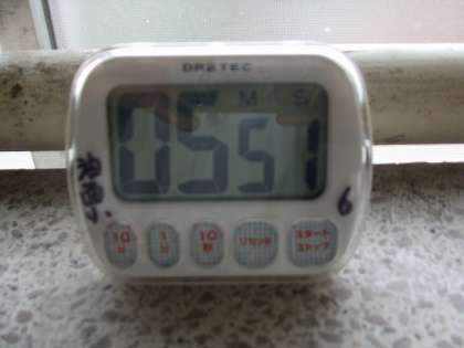 キッチンタイマーでしっかりと時間を計り、サツマイモが茹であがりました。
