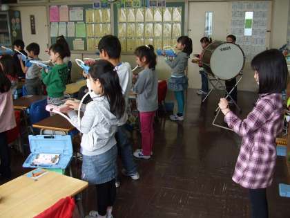 新1年生の入学式に向けて合奏をしています。