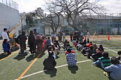 先日の「桜の命をつなぐ集会」に参加できなかった4年生とわかたけ学級の子どもたちが、合同で集会を開きました。