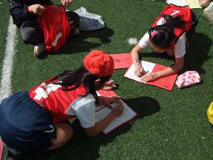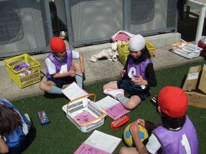 前半が終了し、チーム毎に反省と後半への作戦を立てています。